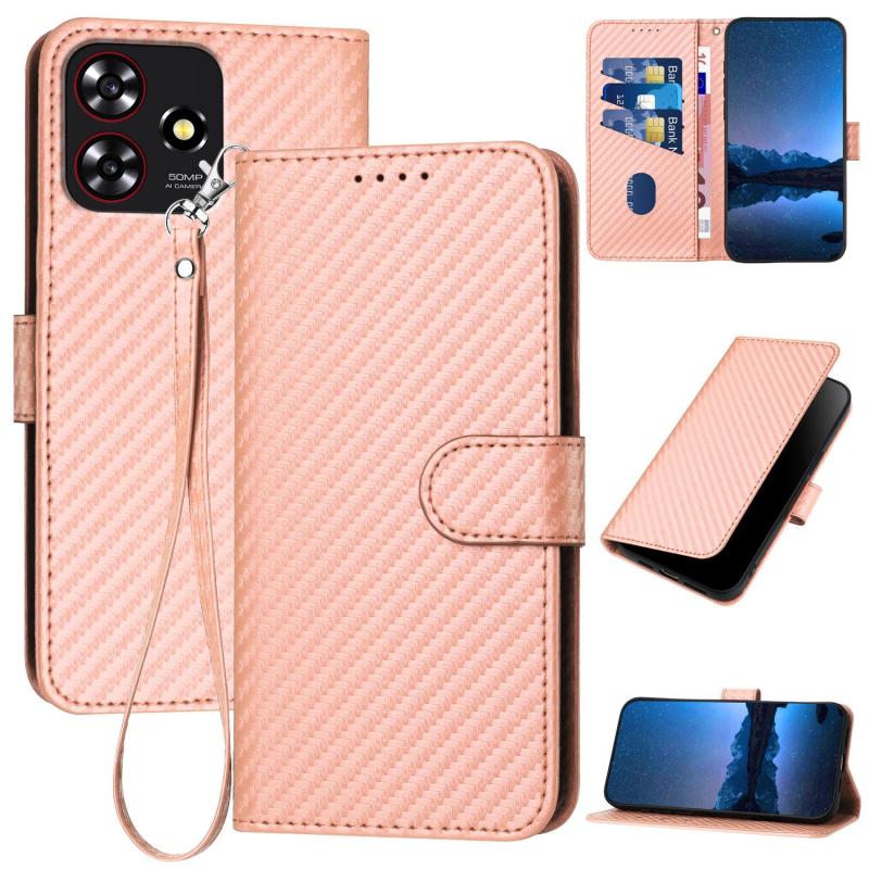 For ZTE Blade A73 4G / Blade V50 Design 4G YX0070 Carbon Fiber Buckle Leather Phone Case with Lanyard(Pink)