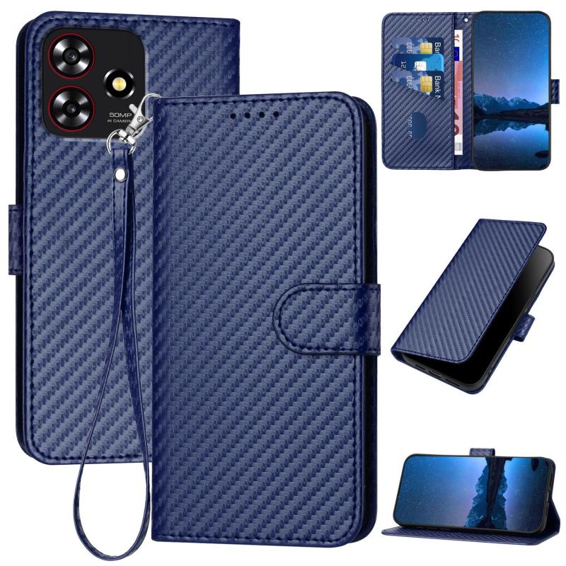 For ZTE Blade A73 4G / Blade V50 Design 4G YX0070 Carbon Fiber Buckle Leather Phone Case with Lanyard(Royal Blue)