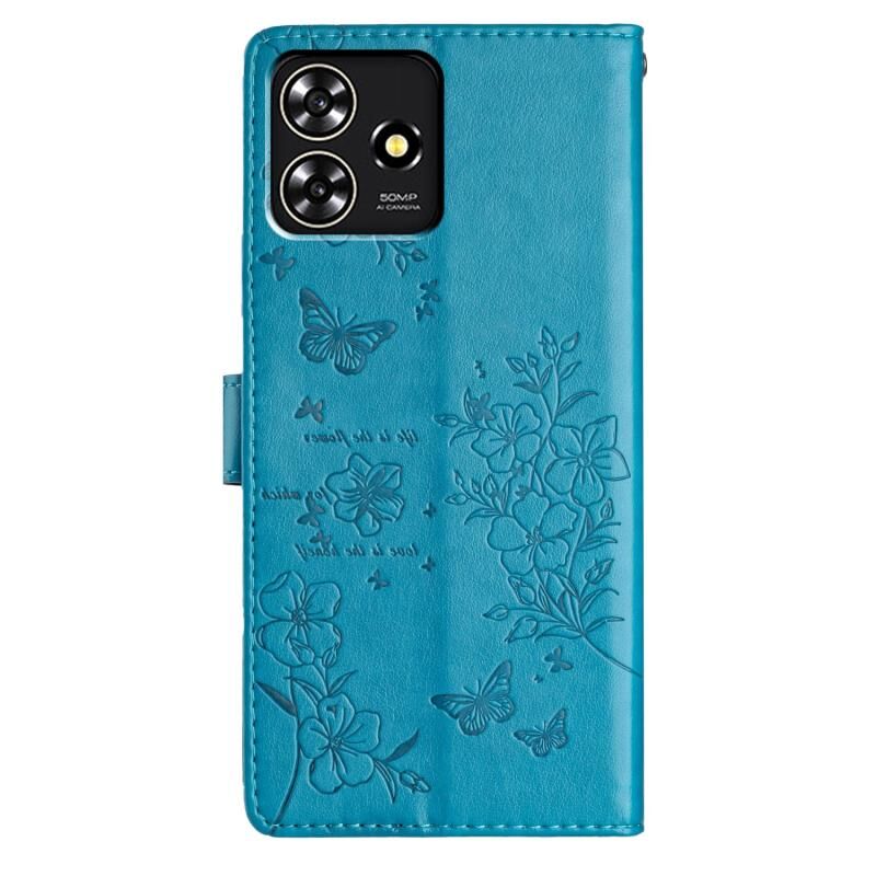 For ZTE Blade A73 4G Butterflies and Flowers Leather Phone Case(Blue)