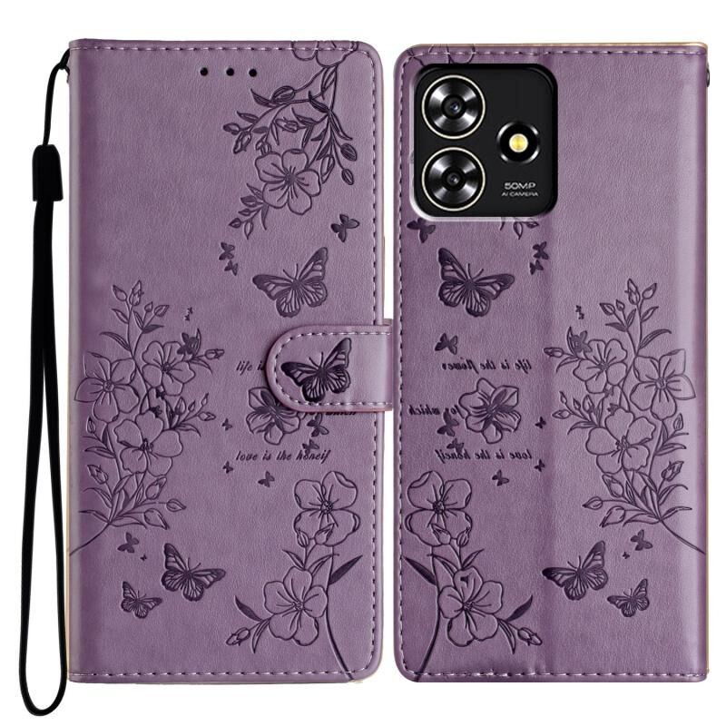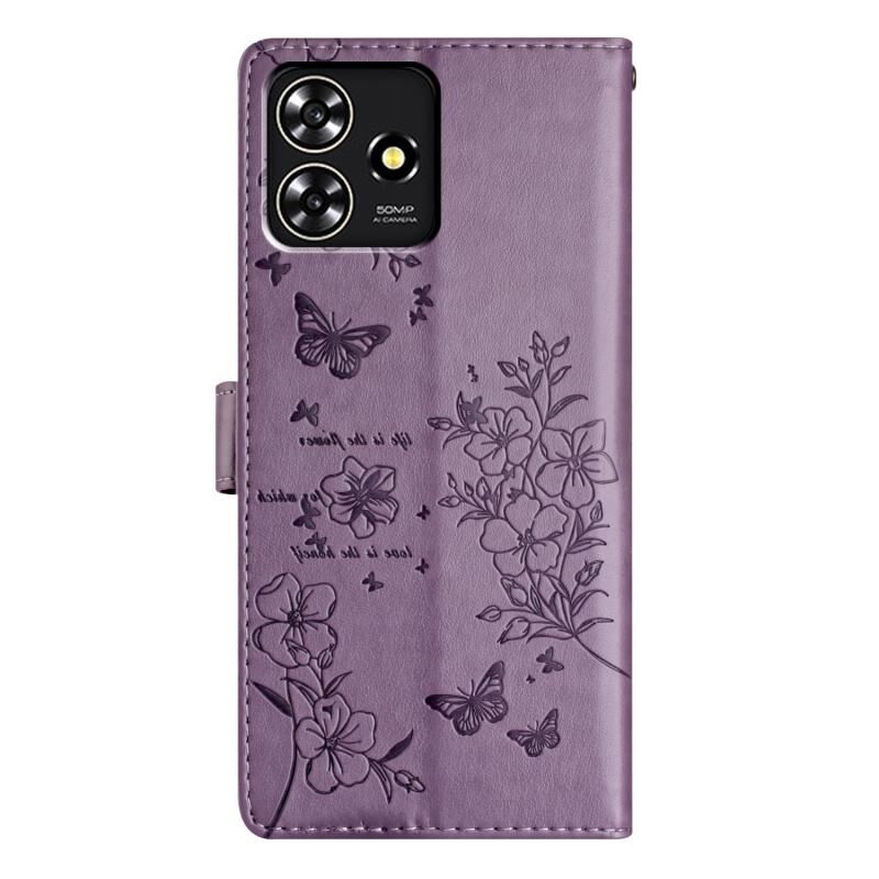 For ZTE Blade A73 4G Butterflies and Flowers Leather Phone Case(Purple)