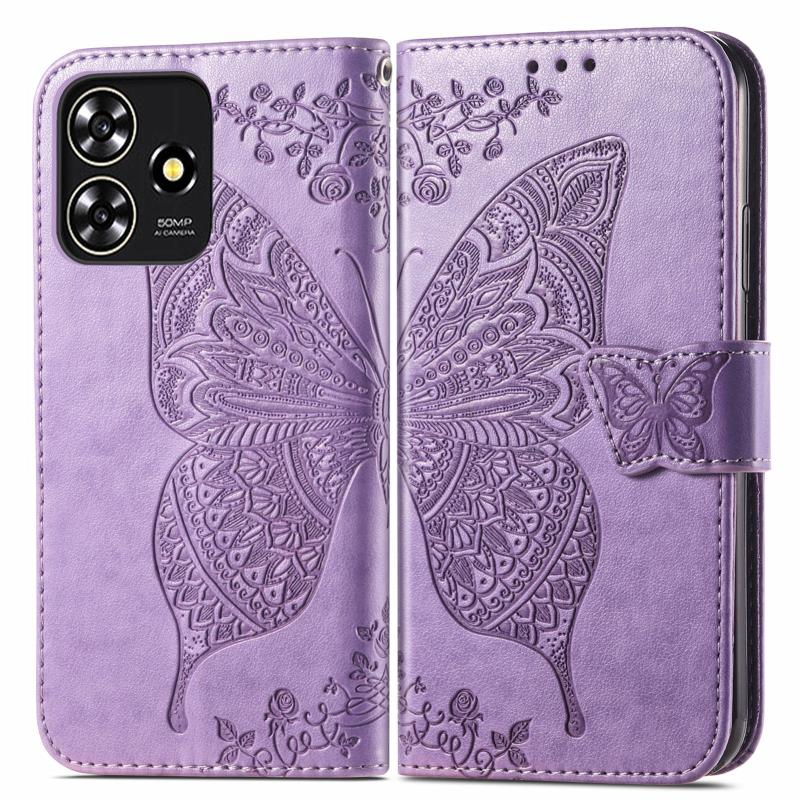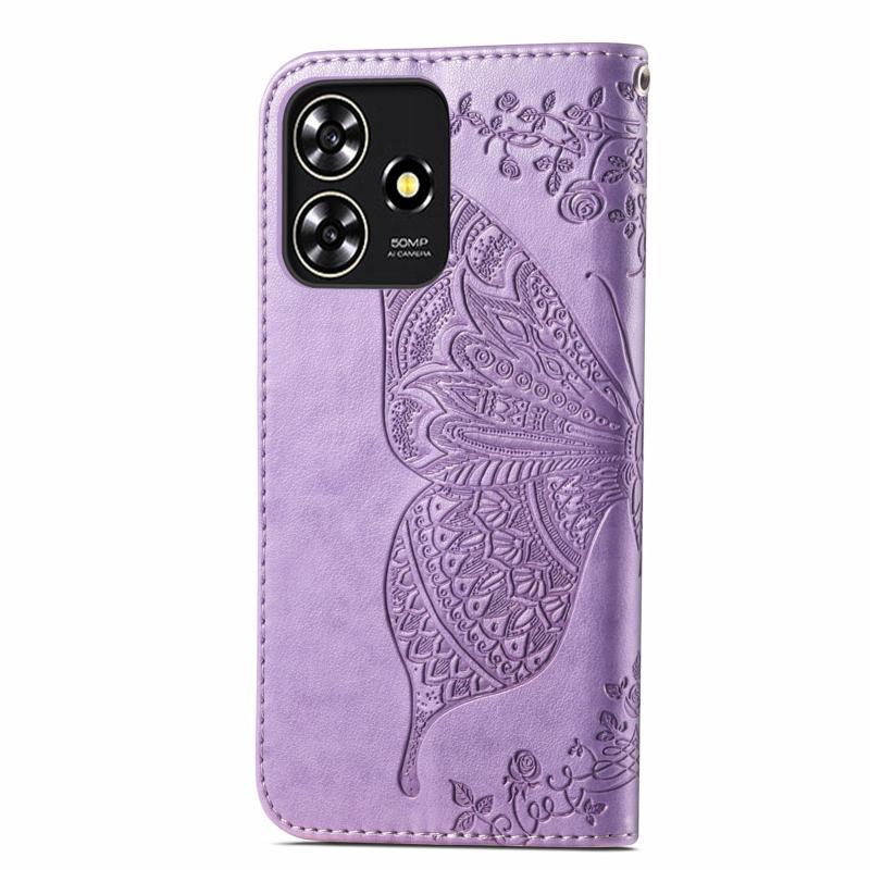 For ZTE Blade A73 4G Butterfly Love Flower Embossed Leather Phone Case(Light Purple)