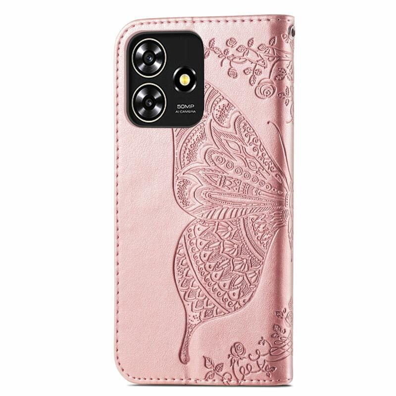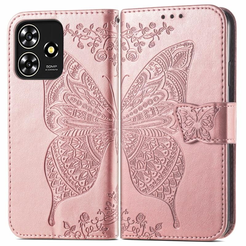 For ZTE Blade A73 4G Butterfly Love Flower Embossed Leather Phone Case(Rose Gold)
