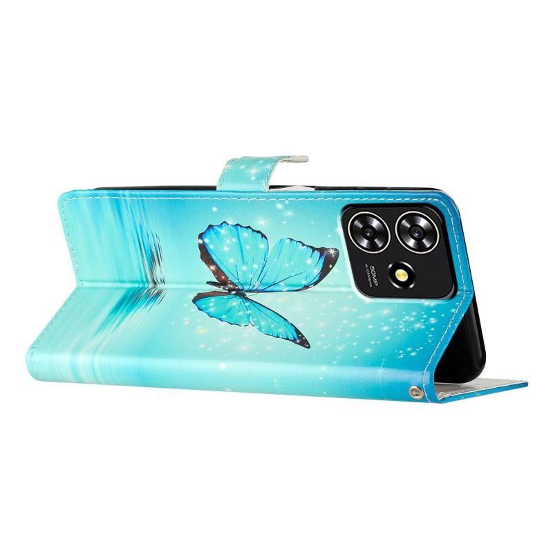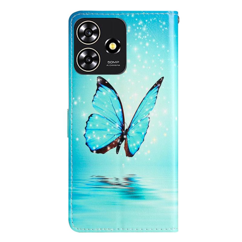 Θήκη τηλεφώνου από δέρμα με έγχρωμο σχέδιο για ZTE Blade A73 4G (Μπλε Πεταλούδα)