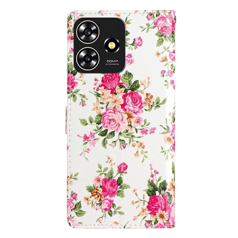 Θήκη τηλεφώνου από δέρμα με έγχρωμο σχέδιο για ZTE Blade A73 4G (Παιώνιες)