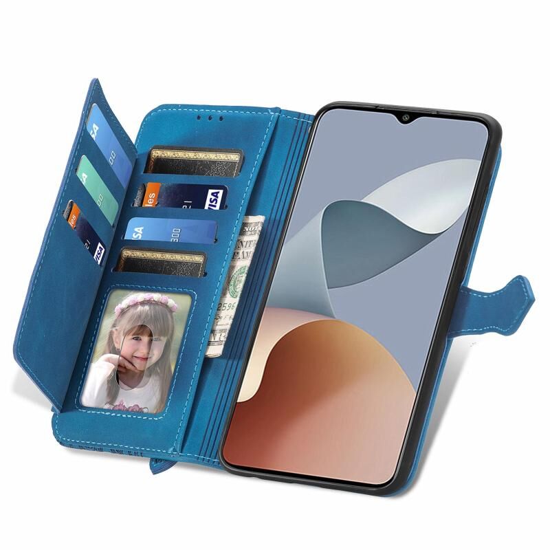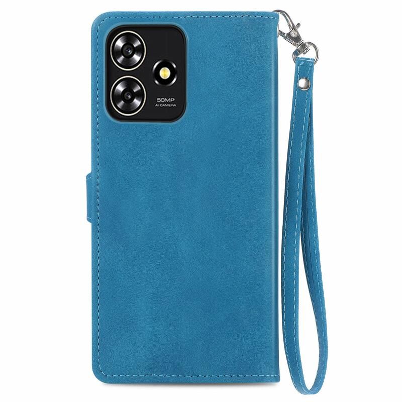 Για ZTE Blade A73 4G ανάγλυφο λουλούδι φερμουάρ δερμάτινη θήκη τηλεφώνου (μπλε)