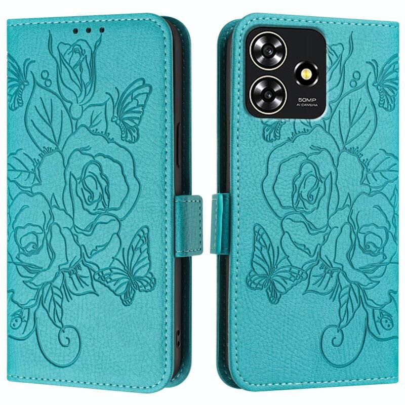 Θήκη τηλεφώνου δερμάτινη με ανάγλυφο σχέδιο τριαντάφυλλου και τεχνολογία RFID κατά της κλοπής για ZTE Blade A73 4G (Πράσινη)