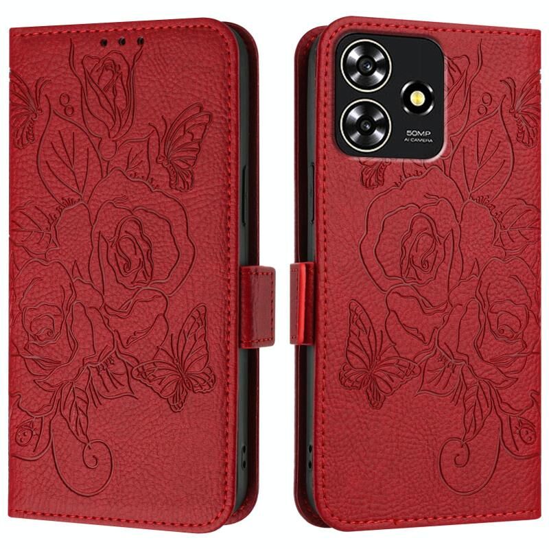 Θήκη τηλεφώνου δερμάτινη με ανάγλυφο σχέδιο τριαντάφυλλου και τεχνολογία RFID κατά της κλοπής για ZTE Blade A73 4G (Πράσινη)