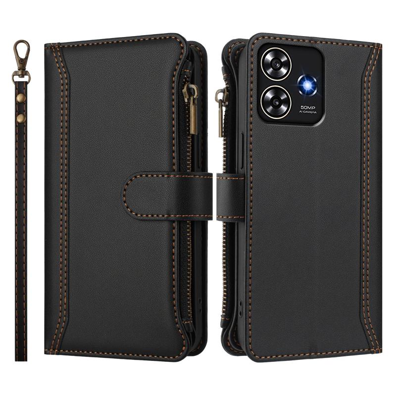 For ZTE Blade A73 4G Magnetic Closure 9 Card Slots Zipper Leather Case with Hand Strap(Black)