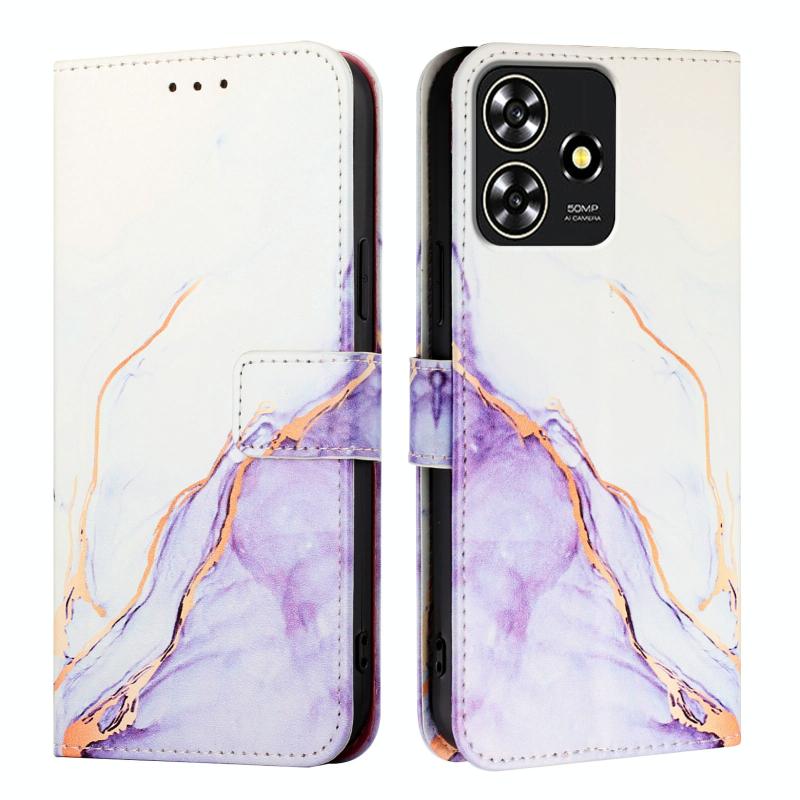 For ZTE Blade A73 4G PT003 Marble Pattern Flip Leather Phone Case(White Purple)