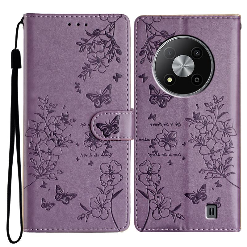 For ZTE Blade A73 5G Butterflies and Flowers Leather Phone Case(Purple)