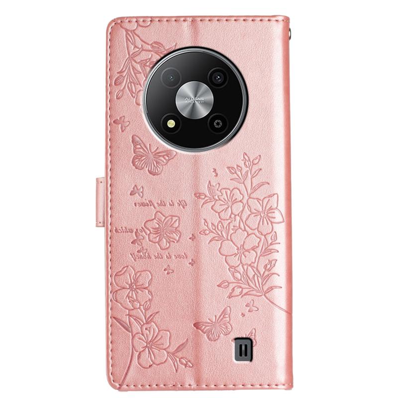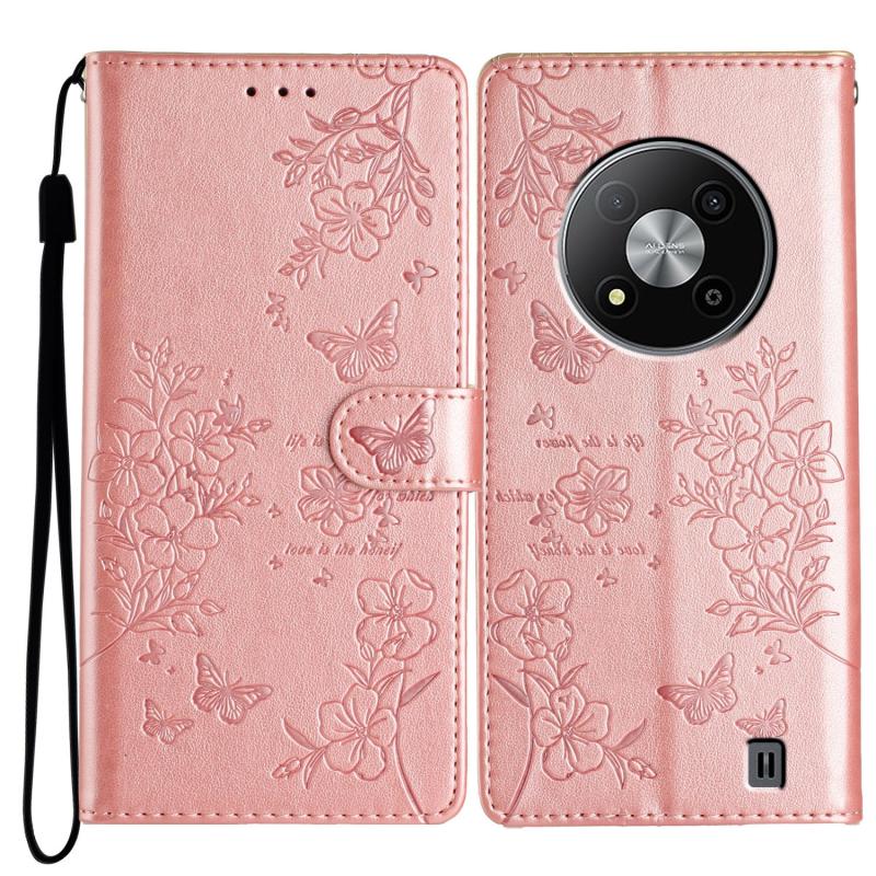 For ZTE Blade A73 5G Butterflies and Flowers Leather Phone Case(Rose Gold)