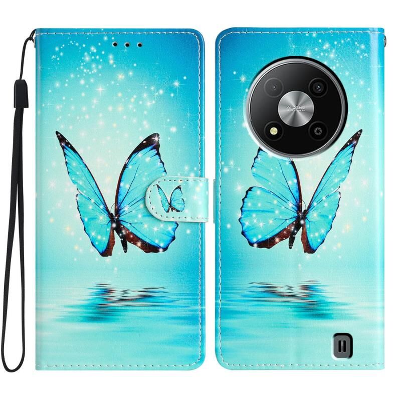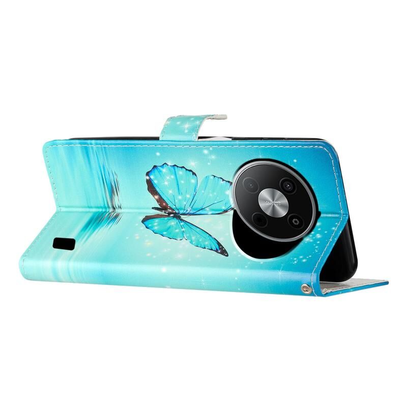 Θήκη τηλεφώνου από δέρμα με έγχρωμο σχέδιο για ZTE Blade A73 5G (Μπλε Πεταλούδα)