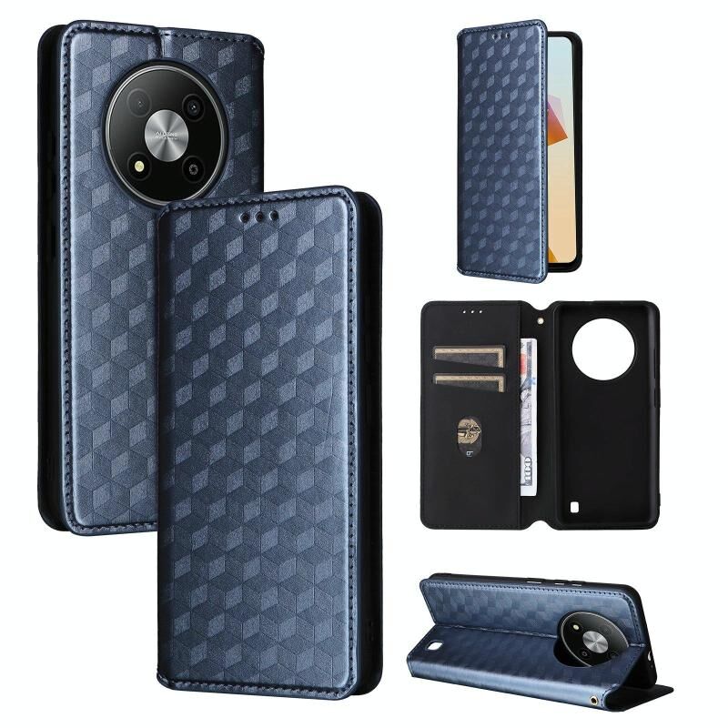 For ZTE Blade A73 5G Cubic Grid Texture Flip Leather Phone Case(Blue)