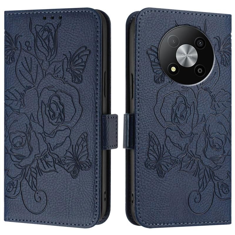 For ZTE Blade A73 5G Embossed Rose RFID Anti-theft Leather Phone Case(Dark Blue)