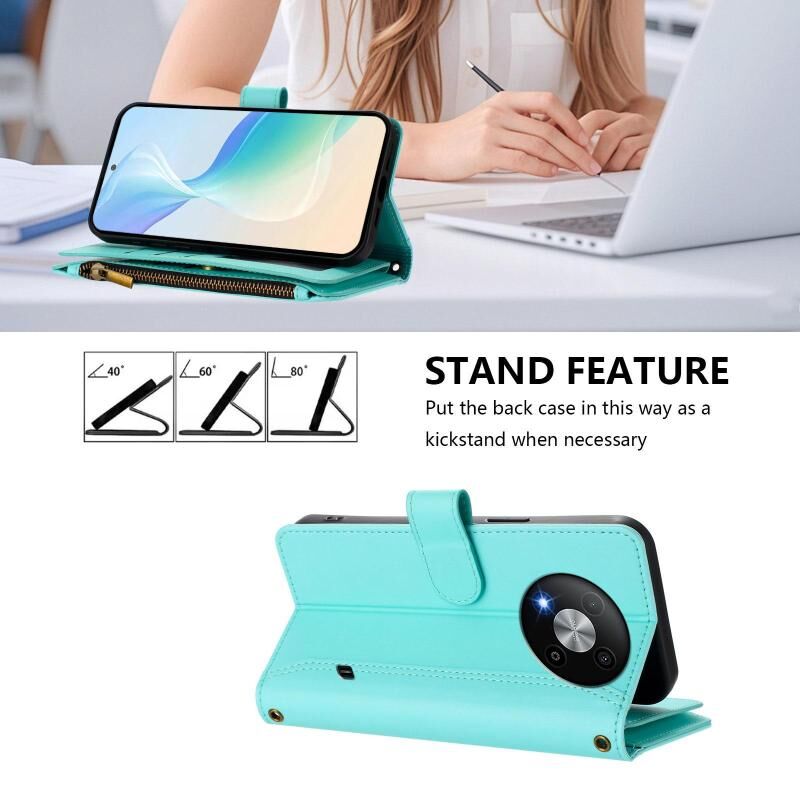 Για ZTE Blade A73 5G Μαγνητικό Κλείσιμο 9 Θήκες Κάρτας Δερμάτινη Θήκη με Φερμουάρ και Λουρί Χεριού (Σκούρο Μπλε)