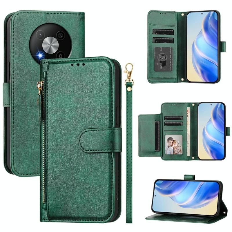 Για ZTE Blade A73 5G Multi-Card Slots φερμουάρ πορτοφόλι δερμάτινη θήκη τηλεφώνου (πράσινο)