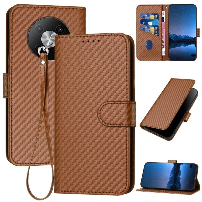 For ZTE Blade A73 5G YX0070 Carbon Fiber Buckle Leather Phone Case with Lanyard(Coffee)