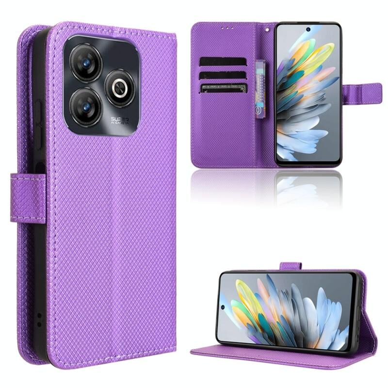 Για ZTE Blade A75 4G Diamond Texture Δερμάτινη θήκη τηλεφώνου (μωβ)