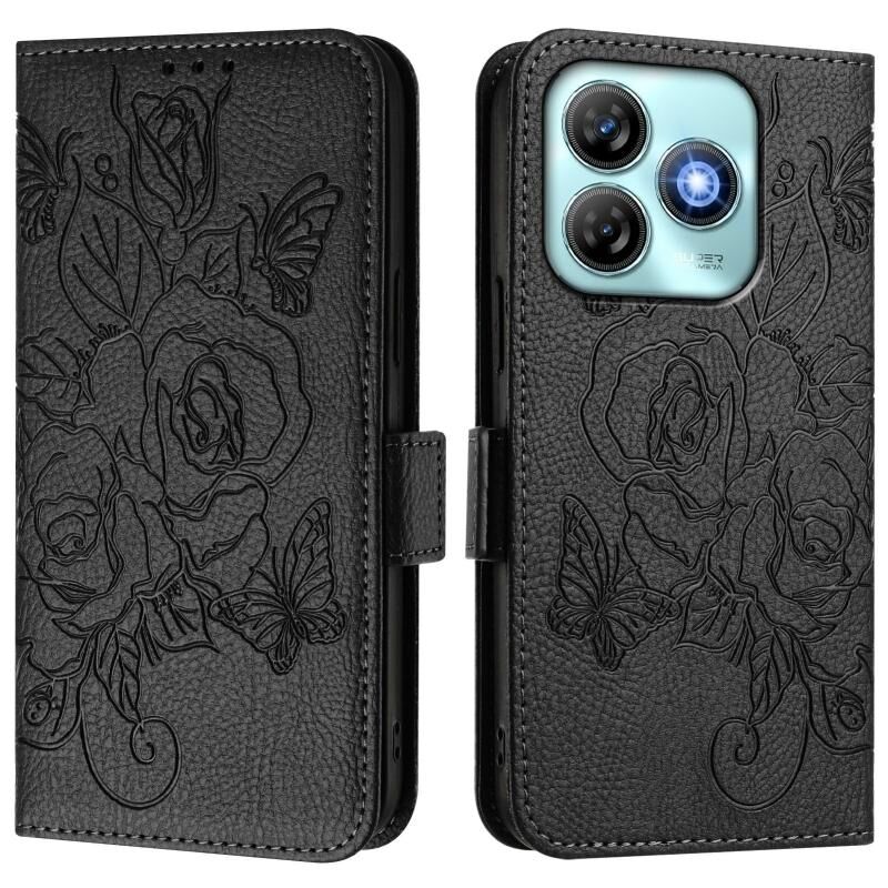 For ZTE Blade A75 4G Embossed Rose RFID Anti-theft Leather Phone Case(Black)