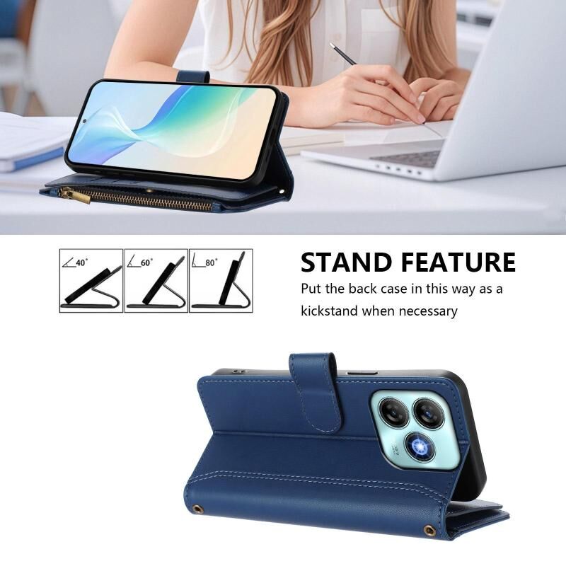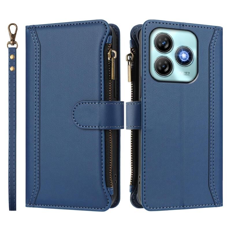 For ZTE Blade A75 4G Magnetic Closure 9 Card Slots Zipper Leather Case with Hand Strap(Dark Blue)