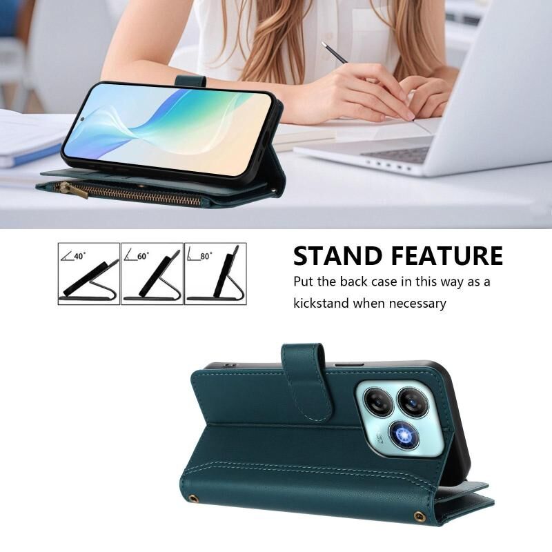 For ZTE Blade A75 4G Magnetic Closure 9 Card Slots Zipper Leather Case with Hand Strap(Dark Green)