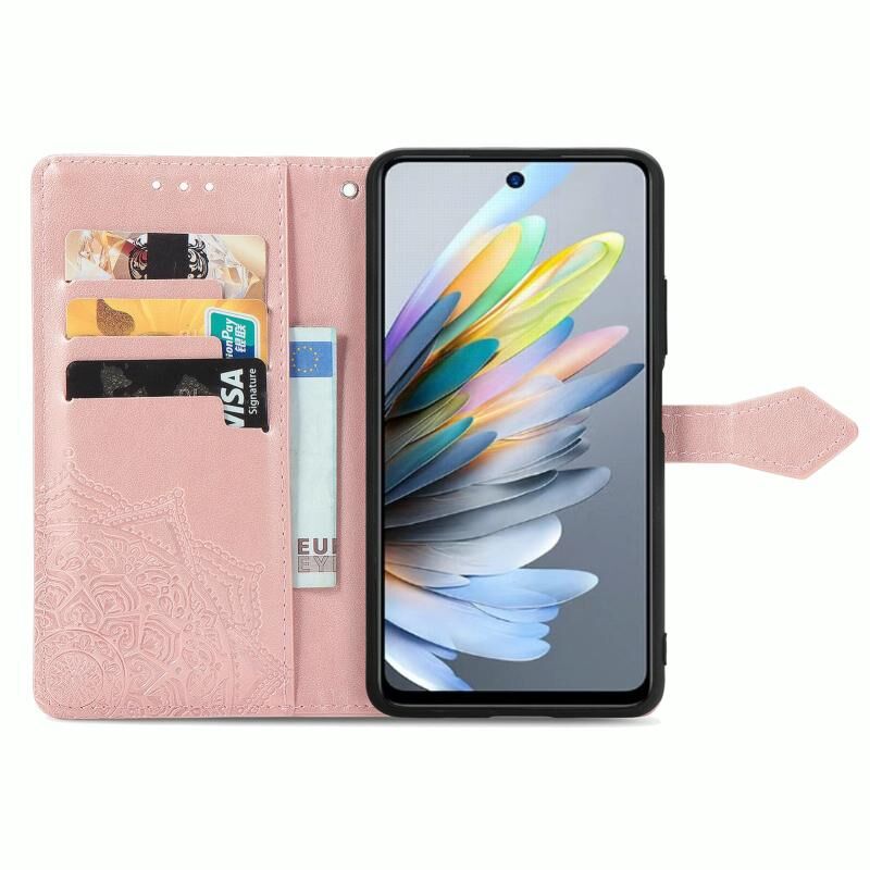 Θήκη τηλεφώνου από δέρμα με ανάγλυφο σχέδιο Mandala Flower για ZTE Blade A75 4G (Χρυσό Ρόδι)