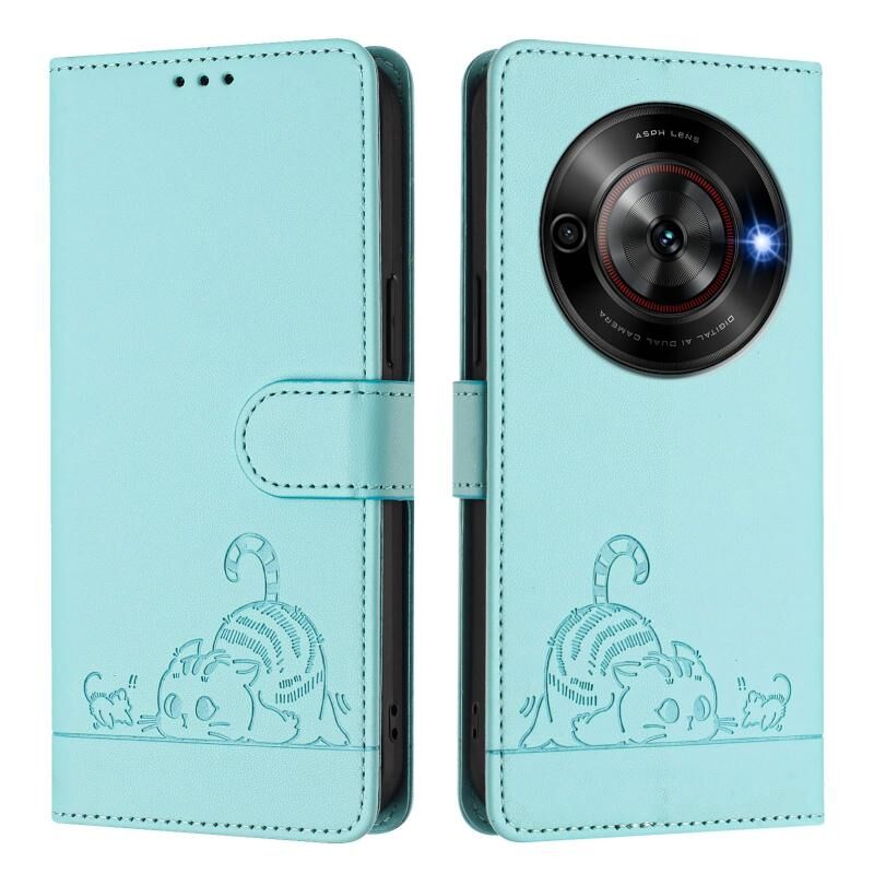 For ZTE Blade A75 5G Cat Rat Embossed Pattern RFID Leather Phone Case with Lanyard(Mint Green)