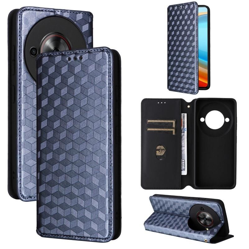 For ZTE Blade A75 5G / nubia Focus 5G Cubic Grid Texture Flip Leather Phone Case(Blue)