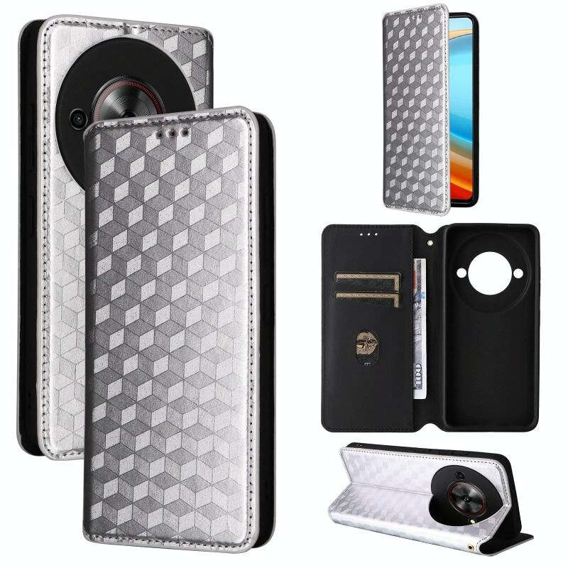 For ZTE Blade A75 5G / nubia Focus 5G Cubic Grid Texture Flip Leather Phone Case(Silver)