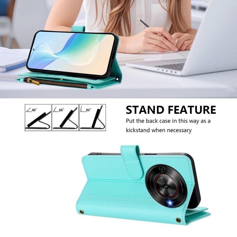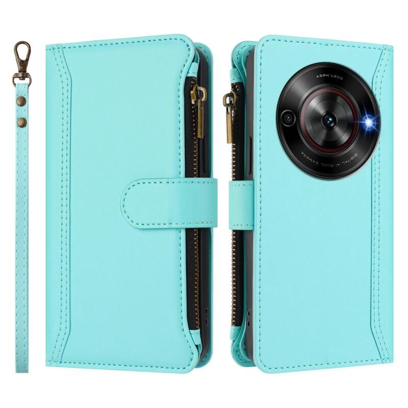 For ZTE Blade A75 5G / Nubia Focus 5G Magnetic Closure 9 Card Slots Zipper Leather Case with Hand Strap(Mint Green)