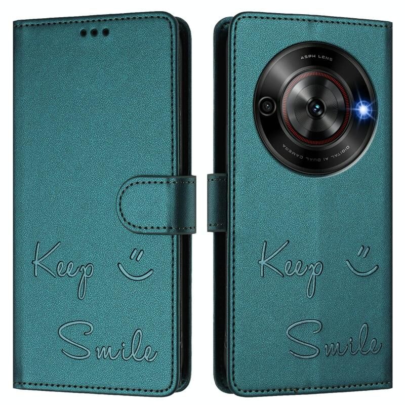 Για ZTE Blade A75 5G Χαμόγελο ανάγλυφο RFID δερμάτινη θήκη τηλεφώνου (Πράσινο παγώνι)