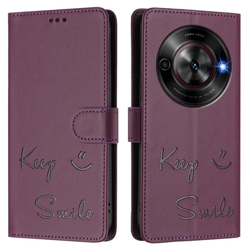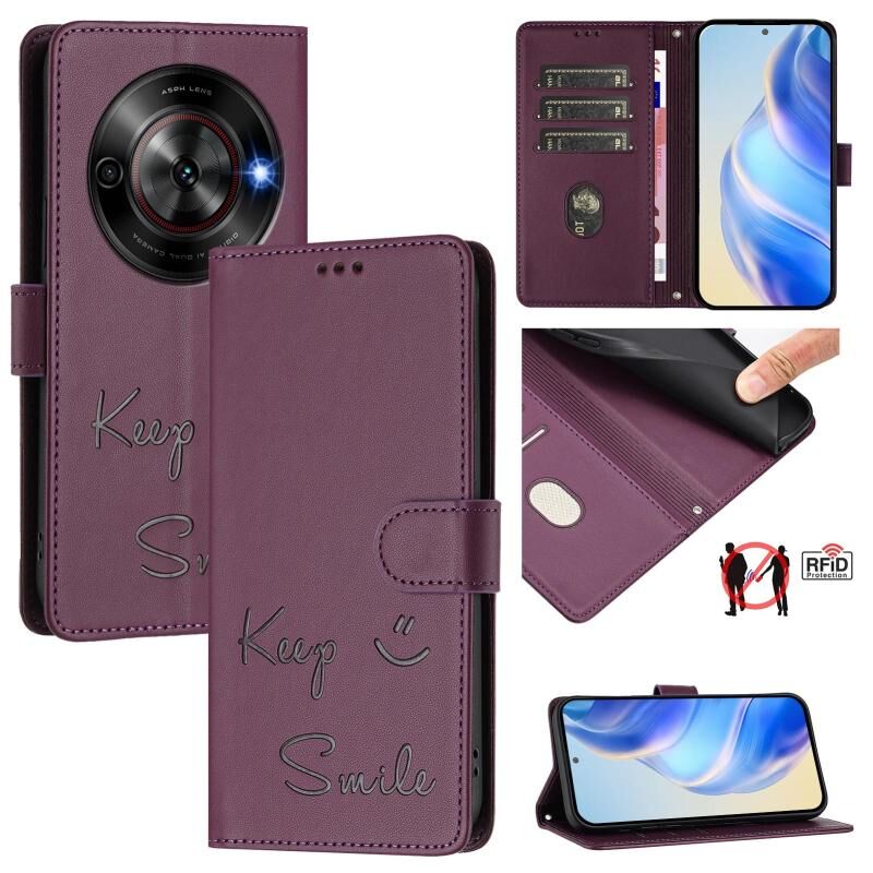 Για ZTE Blade A75 5G Χαμόγελο ανάγλυφο RFID δερμάτινη θήκη τηλεφώνου (Violet)