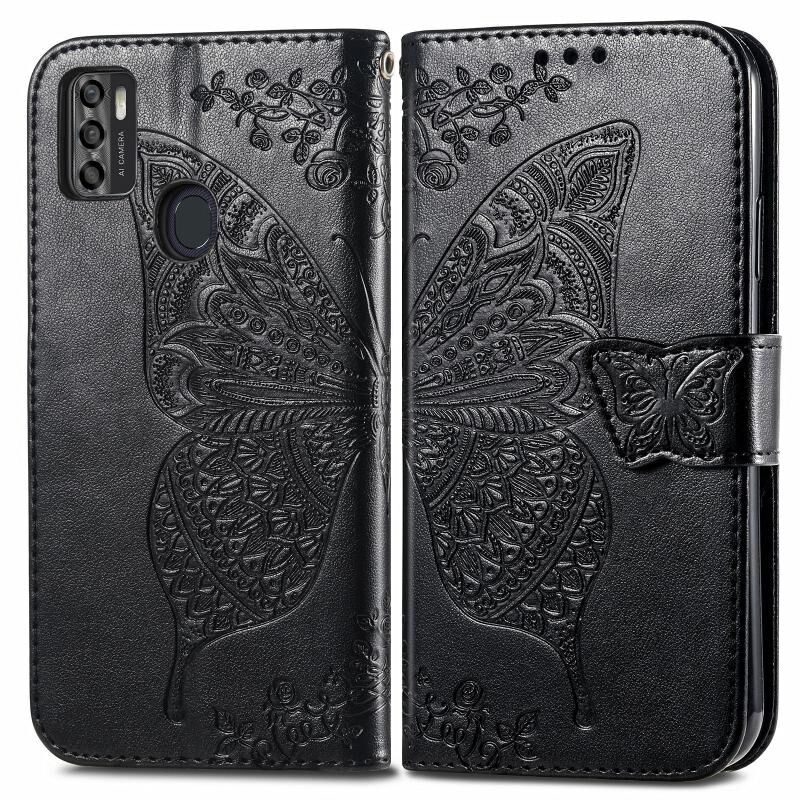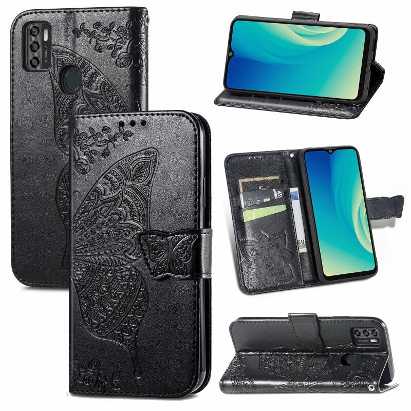 Για ZTE Blade A7S 2020 πεταλούδα αγάπη λουλούδια ανάγλυφο οριζόντια Flip δερμάτινη θήκη με κάτοχο & υποδοχές για κάρτες & πορτοφόλι & κορδόνι (μαύρο)