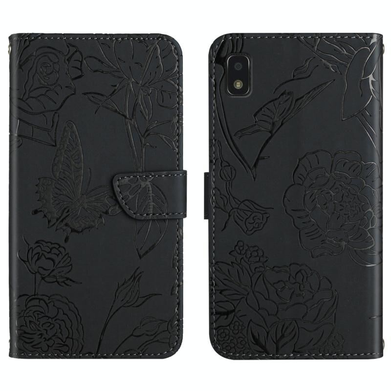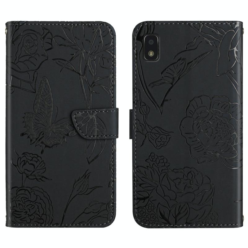 For ZTE Blade L210 Skin Feel Butterfly Peony Embossed Leather Phone Case(Black)