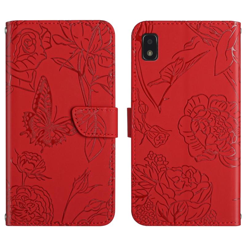 For ZTE Blade L210 Skin Feel Butterfly Peony Embossed Leather Phone Case(Red)