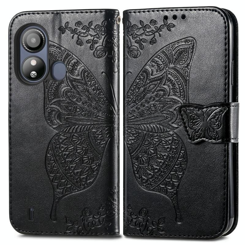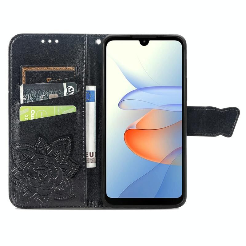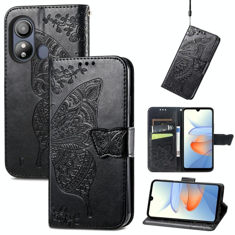 For ZTE Blade L220 Butterfly Love Flower Embossed Leather Phone Case(Black)