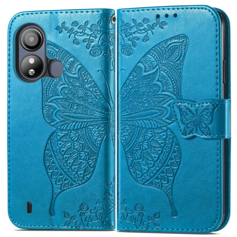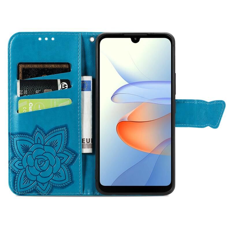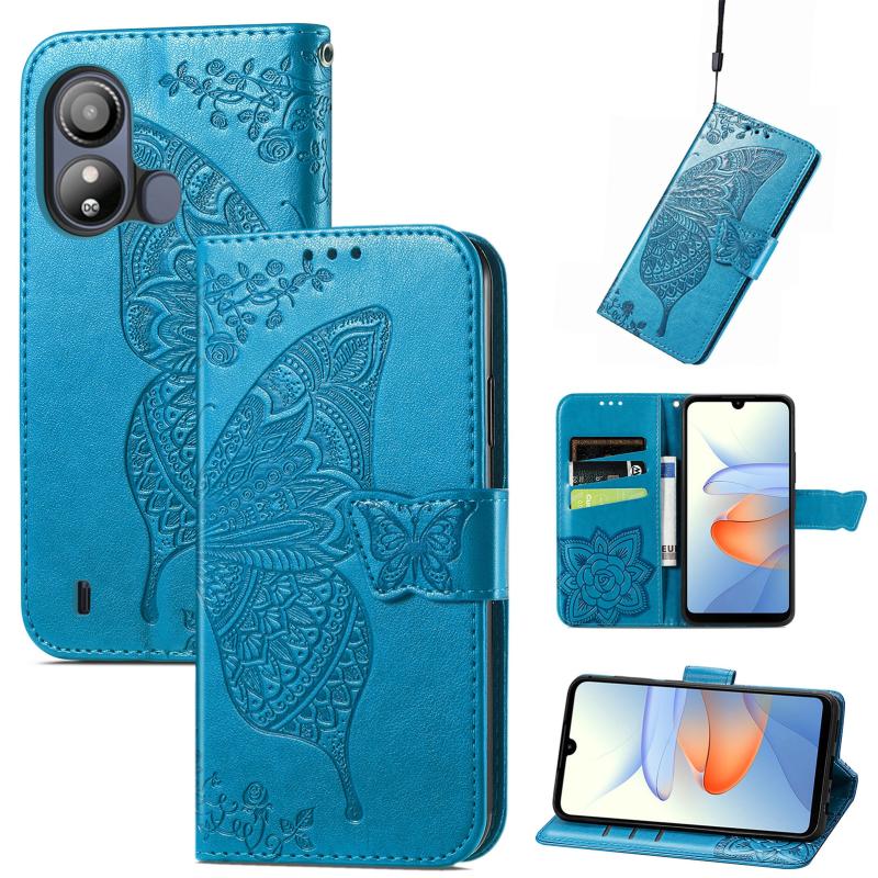 For ZTE Blade L220 Butterfly Love Flower Embossed Leather Phone Case(Blue)