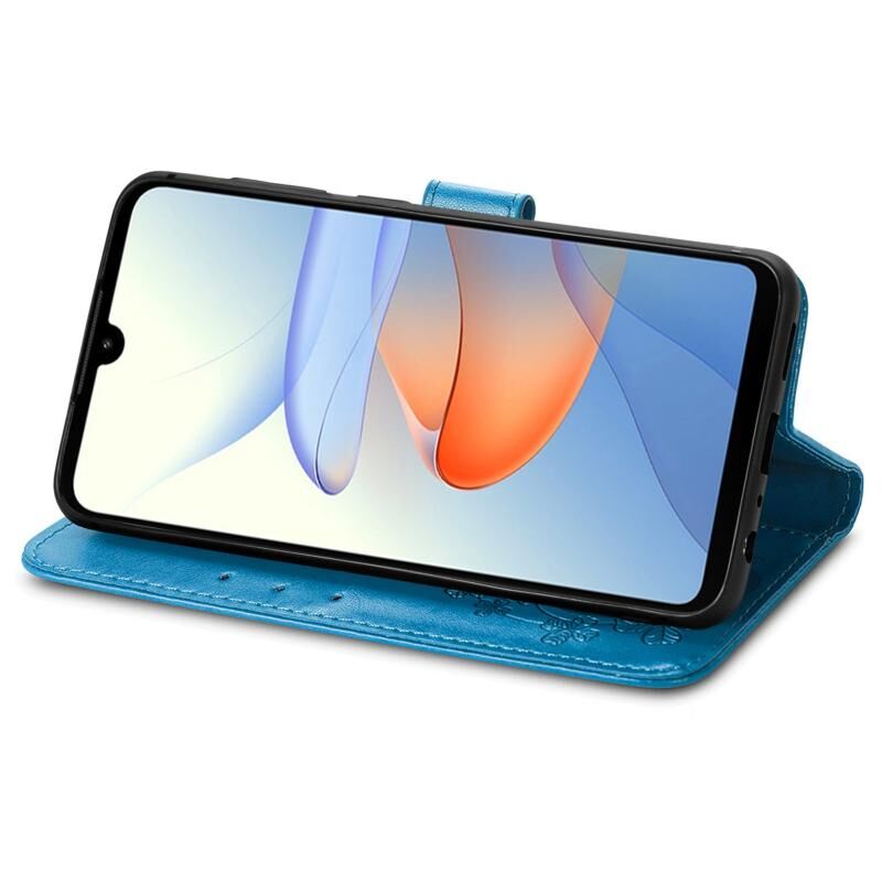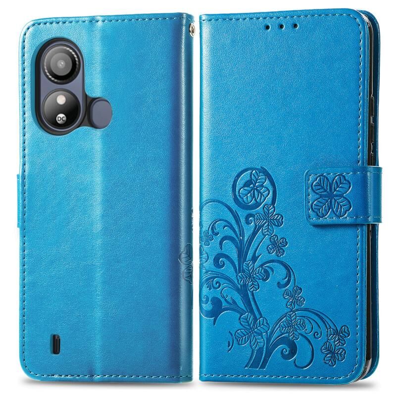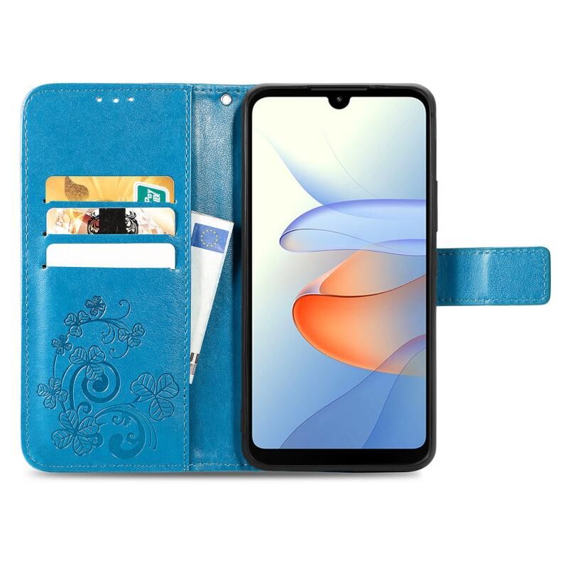 Για ZTE Blade L220 τετράφυλλο κούμπωμα ανάγλυφη δερμάτινη θήκη τηλεφώνου (μπλε)