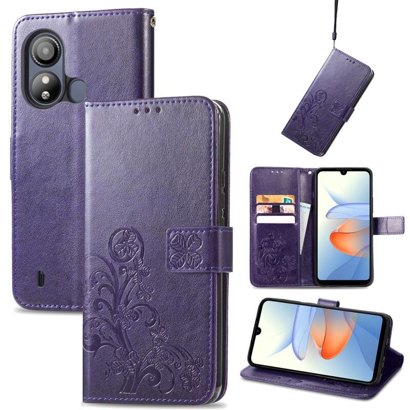 Για ZTE Blade L220 τετράφυλλο κούμπωμα ανάγλυφη δερμάτινη θήκη τηλεφώνου (μωβ)