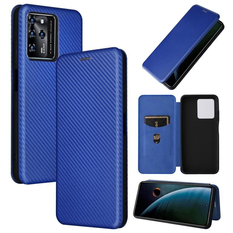 Για ZTE Blade V30 Carbon Fiber Υφή οριζόντια Flip PU τηλέφωνο υπόθεση (μπλε)