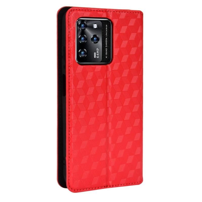 Θήκη τηλεφώνου δερμάτινη, τύπου flip, με υφή κυβικού πλέγματος για ZTE Blade V30 (Μαύρο)