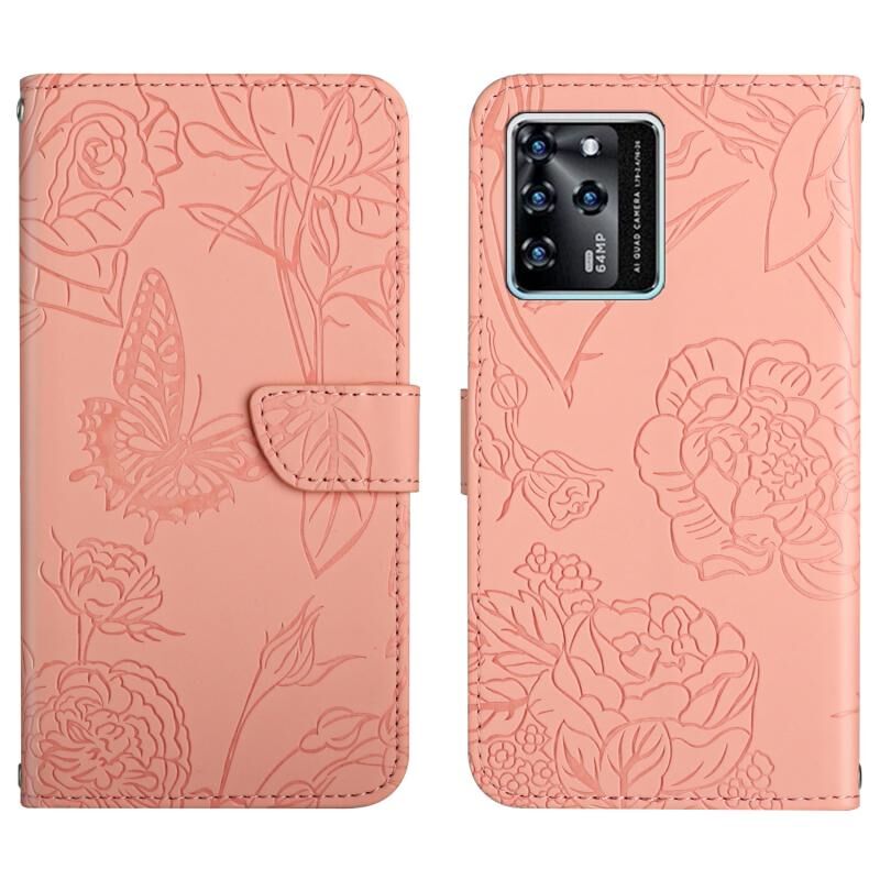 Θήκη τηλεφώνου από δέρμα με ανάγλυφο σχέδιο πεταλούδας και παιώνιας για ZTE Blade V30 (Ροζ)