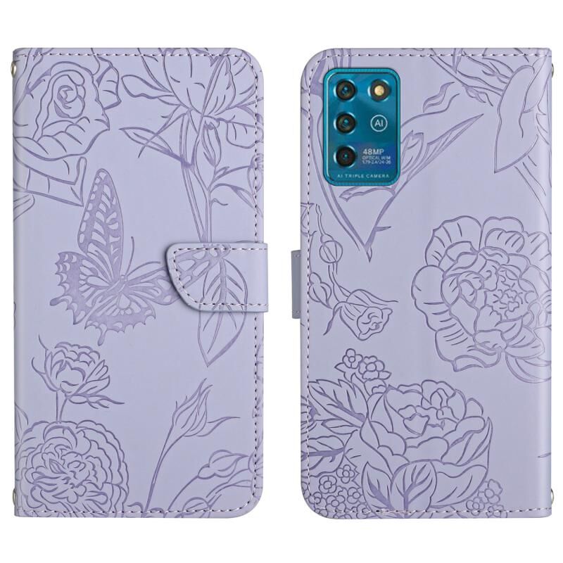 For ZTE Blade V30 Vita Skin Feel Butterfly Peony Embossed Leather Phone Case(Purple)