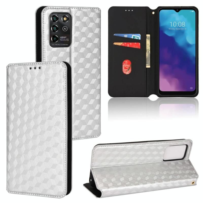 For ZTE Blade V30 Vita / V2022 Cubic Grid Texture Flip Leather Phone Case(Silver)