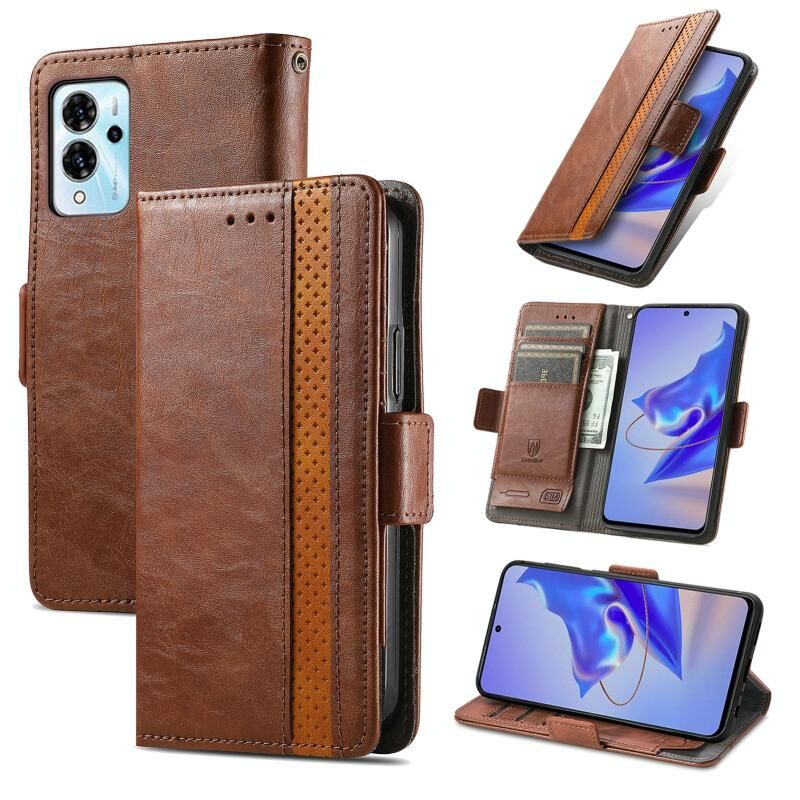 Για ZTE Blade V40 Pro CaseNeo Splicing Διπλή μαγνητική πόρπη δερμάτινη θήκη τηλεφώνου (καφέ)