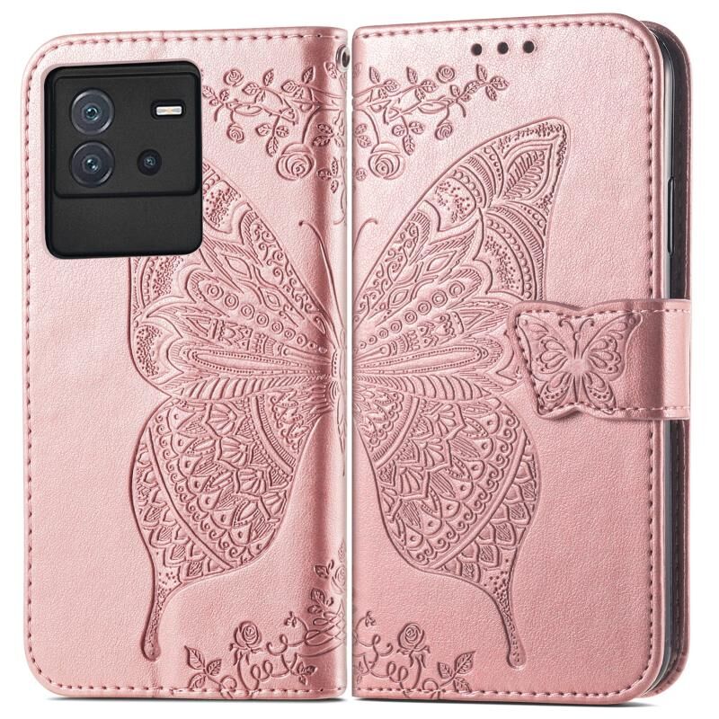 Θήκη τηλεφώνου από δέρμα με ανάγλυφο σχέδιο λουλουδιών Butterfly Love για ZTE Blade V40s (Χρυσό Ροζ)