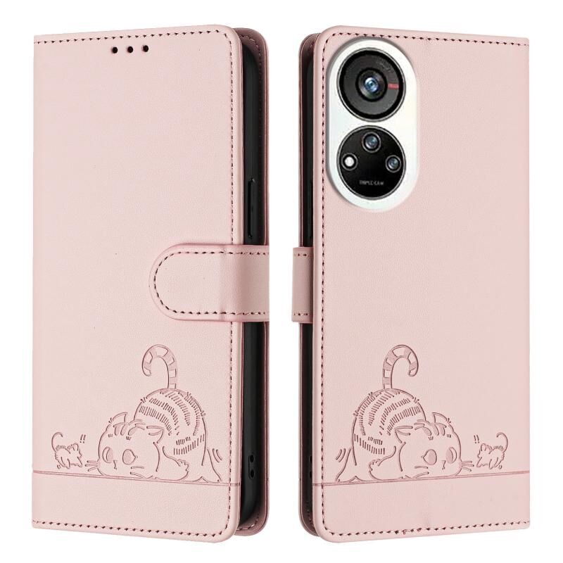 Θήκη τηλεφώνου από δέρμα με ανάγλυφο σχέδιο γάτας και ποντικού για ZTE Blade V40s με κορδόνι (Μέντας Πράσινο)