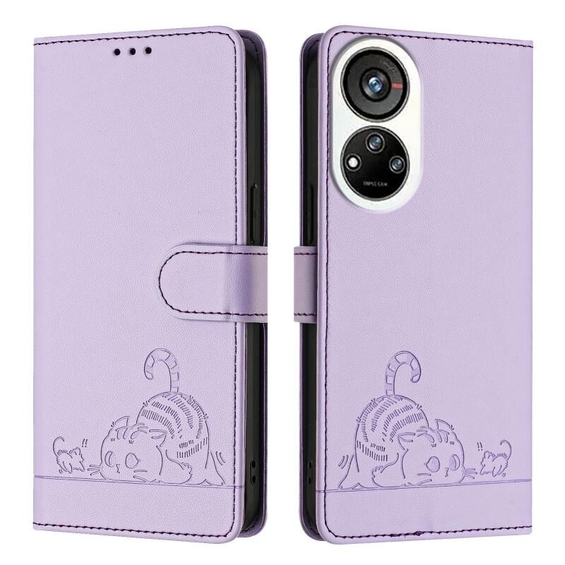 Θήκη τηλεφώνου από δέρμα με ανάγλυφο σχέδιο γάτας και ποντικού για ZTE Blade V40s με κορδόνι (Μέντας Πράσινο)