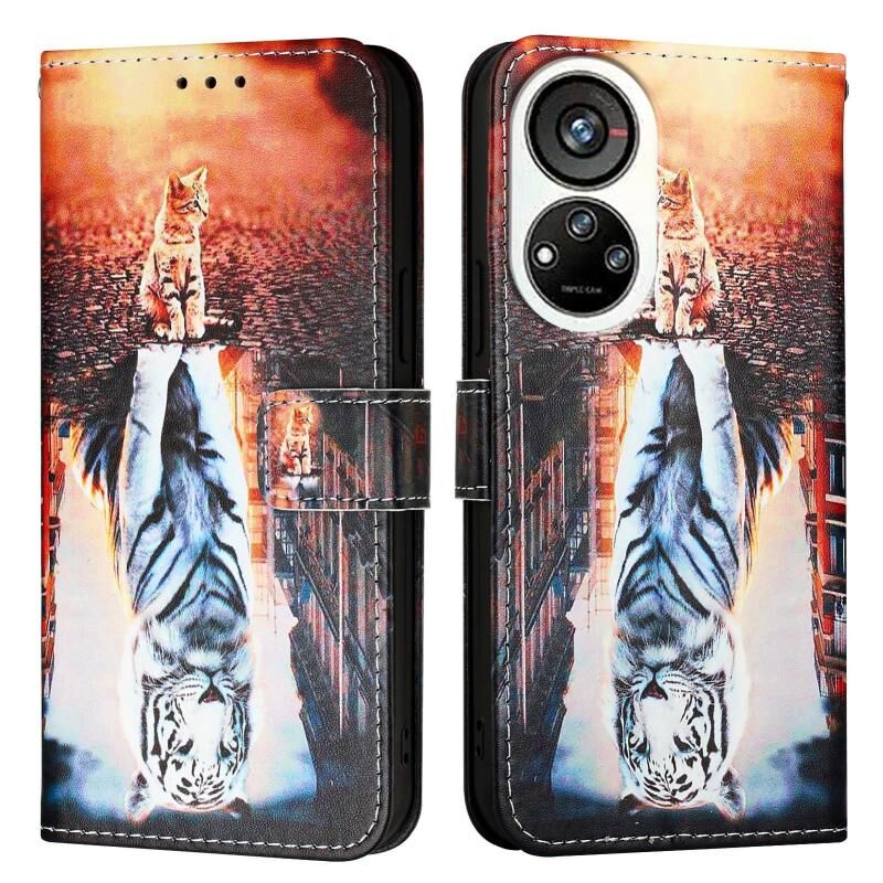 Θήκη τηλεφώνου από δέρμα με απλή ύφανση και πολύχρωμο σχέδιο (γάτες και τίγρεις) για ZTE Blade V40s.