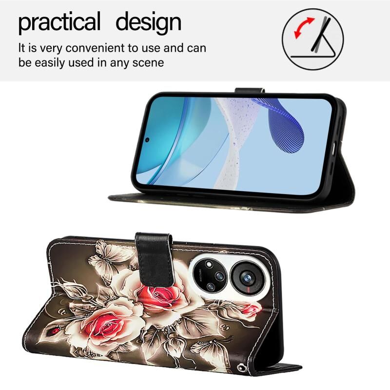 Θήκη τηλεφώνου από δέρμα με απλή ύφανση και πολύχρωμο σχέδιο για ZTE Blade V40s (Τριαντάφυλλα σε μαύρο φόντο)